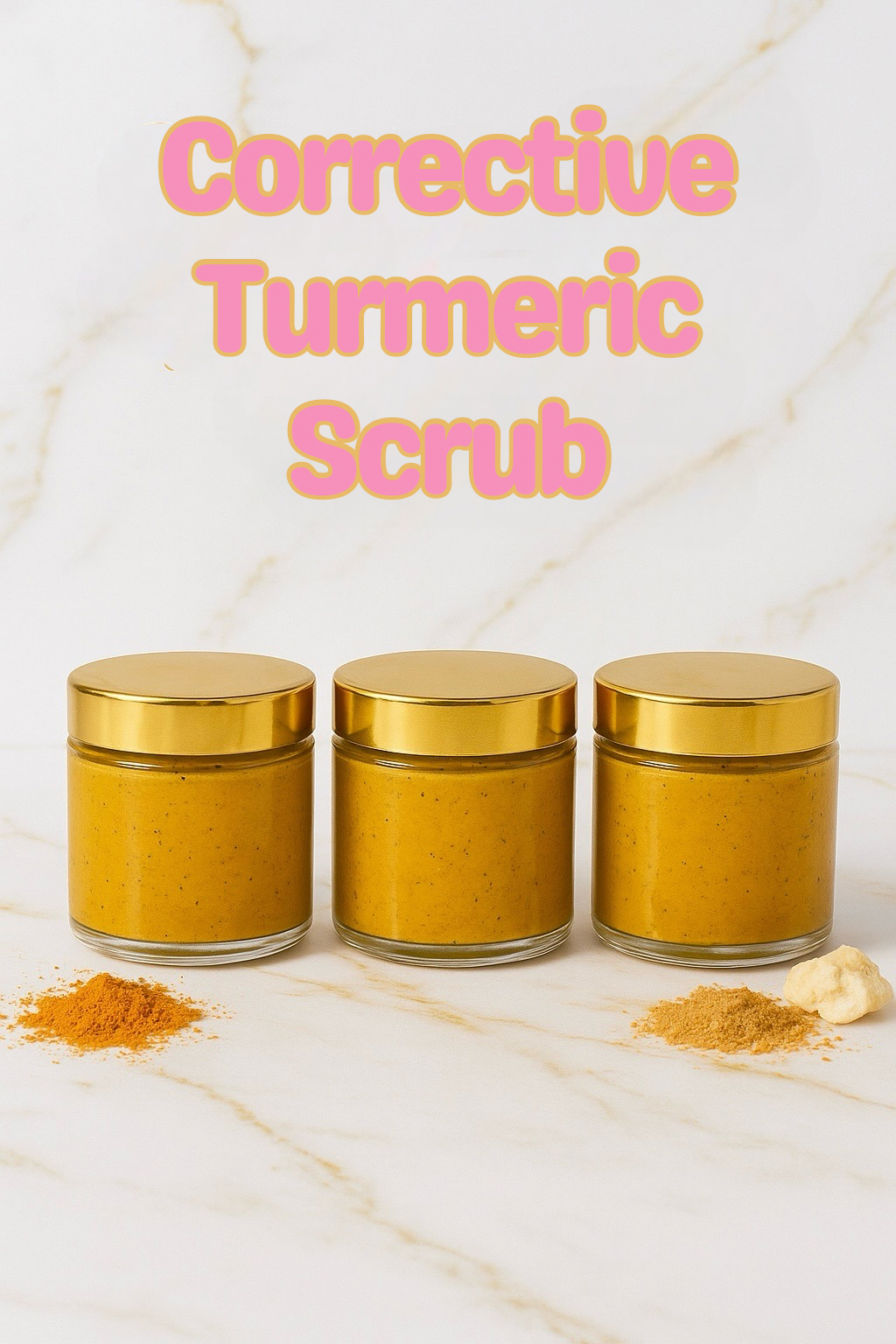 We whipped up some up some face icing for you! Our Corrective Turmeric Scrub allows you to have a beneficial facial exfoliant while also providing ingredients to balance skin complexion! Our scrub helps provide healthy, balanced skin by: neutralizing your skin tone, exfoliating dead cells, lightening/brightening agents for dark marks and reducing acne. This scrub is ideal for combination skin & oily skin types + hyperpigmentation & acne-prone skin conditions. Comes in a 2oz gold top plastic jar!